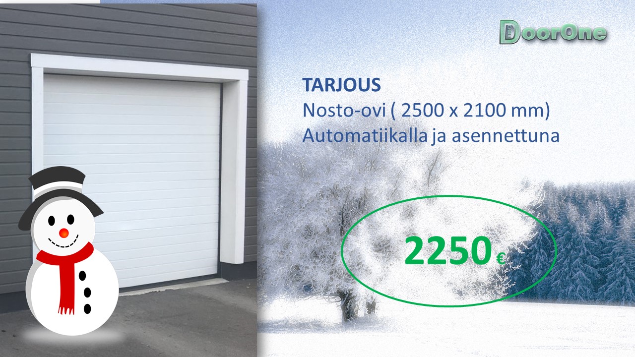 Talvitarjous: Nosto-ovi automatiikalla ja paikalleen asennettuna 2250€. Kysy tarjous oman tallisi mitoilla.